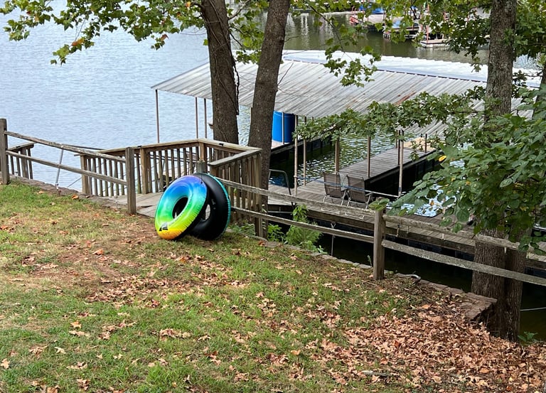 Each cabin features a hot tub on the deck with gas grill and dining space. There is also a shared charcoal grill (charcoal and lighter provided) a firepit and boat dock for your use. There are two boat slips available of you want to bring your boat. There is a boat launch not far away. Bring your own beach towels.